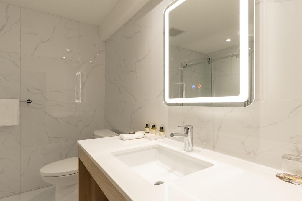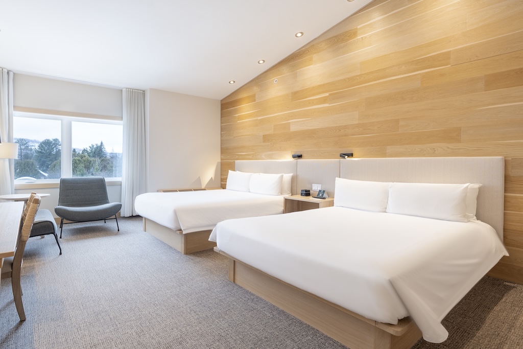 For visiting families, couples or solo, our contemporary renovated «Classic» rooms will entertain all your needs with their snug style and comfort, your home away from home. Whether for relaxation or work tasks, our rooms supply state of the art features and technology, an ideal 275 to 300 sq ft space, yours to enjoy