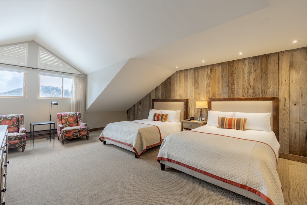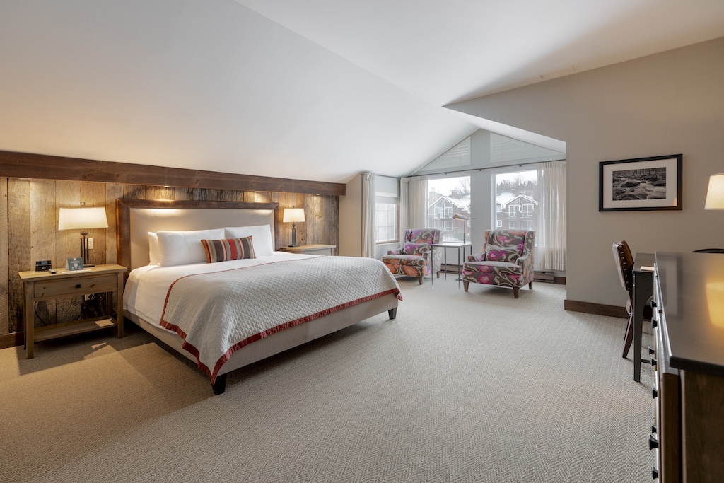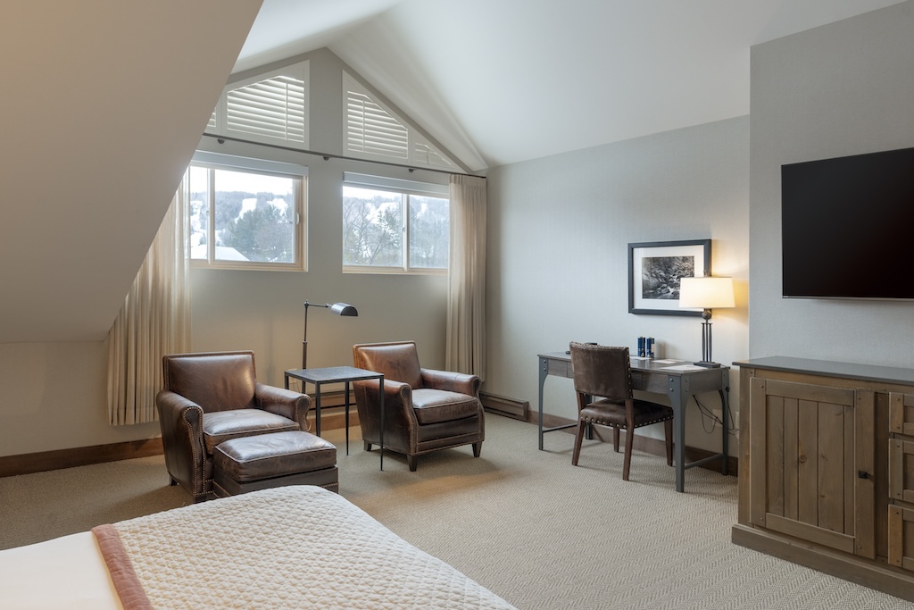 En famille, en couple ou en solo, avec des superficies allant de 275 à 440 pieds carrés, nos nouvelles chambres rénovées sont à la fois des lieux de détente, des espaces de vie et des bureaux si nécessaire. Décorées avec soin et goût dans un style « rustique-chic », elles sont luxueuses et offrent un équipement complet à la fine pointe du confort et de la technologie.